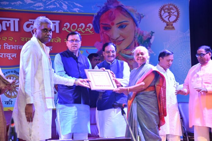देहरादून:मुख्यमंत्री पुष्कर सिंह धामी हरिद्वार रोड स्थित संस्कृति विभाग के प्रेक्षागृह में संस्कार भारती द्वारा स्वाधीनता के अमृत महोत्सव के उपलक्ष्य में आयोजित उत्तराखण्ड कला दर्शन कार्यक्रम में प्रतिभाग किया।
