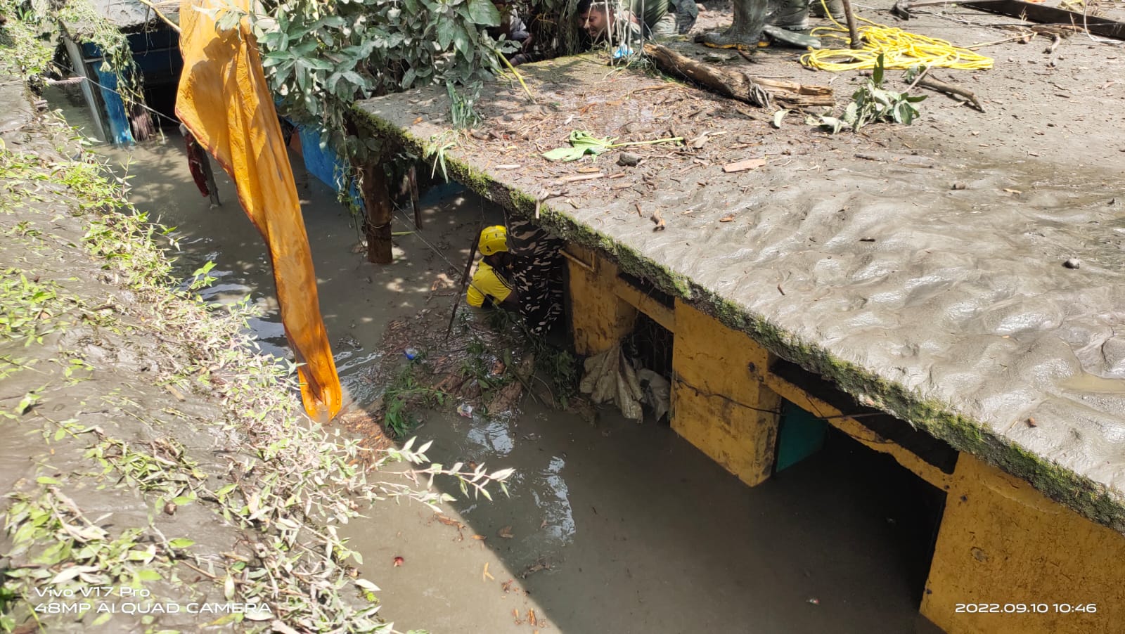 SDRF रेस्क्यू टीम द्वारा घटनास्थल पर सर्चिंग करते हुए डूबी हुई महिला पशुपति देवी उम्र -65 वर्ष पत्नी मान बहादुर का शव बरामद कर सिविल पुलिस के सुपर्द किया।