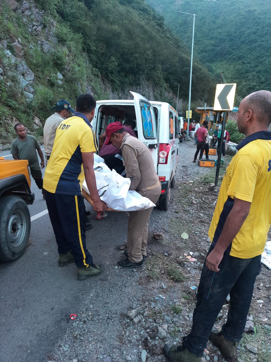 SDRF रेस्क्यू टीम द्वारा गहरी खाई में उतरकर 01 घायल को निकालकर अस्पताल पहुँचाया व एक शव को बरामद कर जिला पुलिस के सुपर्द किया।