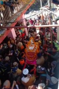 आज श्री यमुनोत्री धाम के कपाट बंद होने की प्रक्रिया में यमुना जी के भाई शनिदेव श्री सोमेश्वर देवता खरशाली से डोली में बैठकर अपनी बहिन को मायके बुलाने यमुनोत्री धाम पहुंचे।
