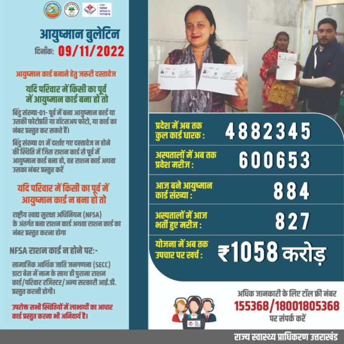उत्तराखंड में आयुष्मान योजना की प्रगति देखी जाए तो अखिल भारतीय स्तर पर भी यह सम्मान जनक और गौरवान्वित करने वाली स्थिति है।