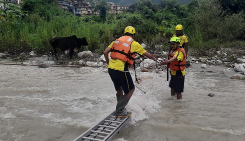 एसडीआरएफ टीम द्वारा त्वरित कार्यवाही करते हुए तत्काल घटनास्थल पर पहुंचकर उक्त सभी पशुओं को नदी से बाहर निकाल कर सुरक्षित स्थान पर पहुंचाया गया।