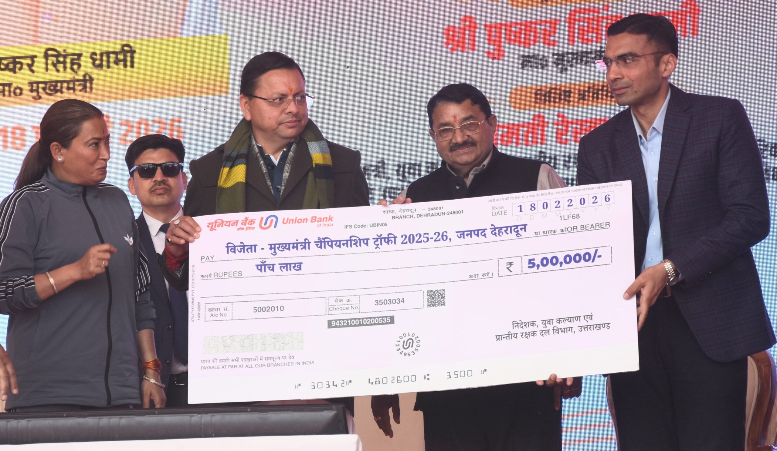 *मुख्यमंत्री और खेल मंत्री ने ट्रॉफी व 5 लाख का चेक देकर किया सम्मानित*