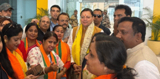 मुख्यमंत्री पुष्कर सिंह धामी का पटना एयरपोर्ट पहुँचने पर स्वागत