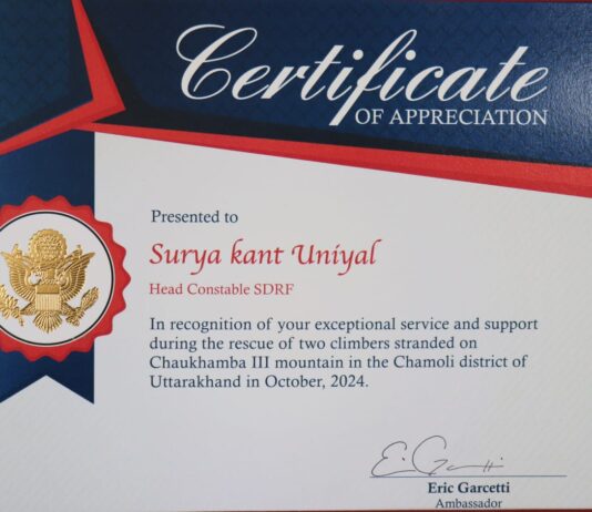 अंतर्राष्ट्रीय मंच पर उत्तराखंड पुलिस का मान: अमेरिकी दूतावास ने SDRF को साहसिक बचाव कार्यों के लिए किया सम्मानित