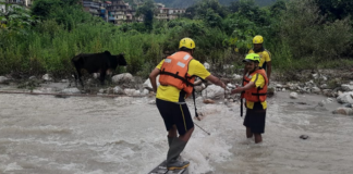 टिहरी के नदी में फंसे पशुओं को सुरक्षित स्थान पर पहुंचाती...