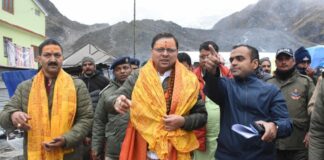 बर्फ़बारी के बीच केदारनाथ धाम पहुँचे सीएम धामी, निर्माणकार्यों का लिया...