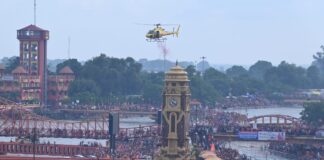 मुख्यमंत्री के निर्देश पर कांवड़ यात्रियों पर हेलीकाप्टर से की गयी...